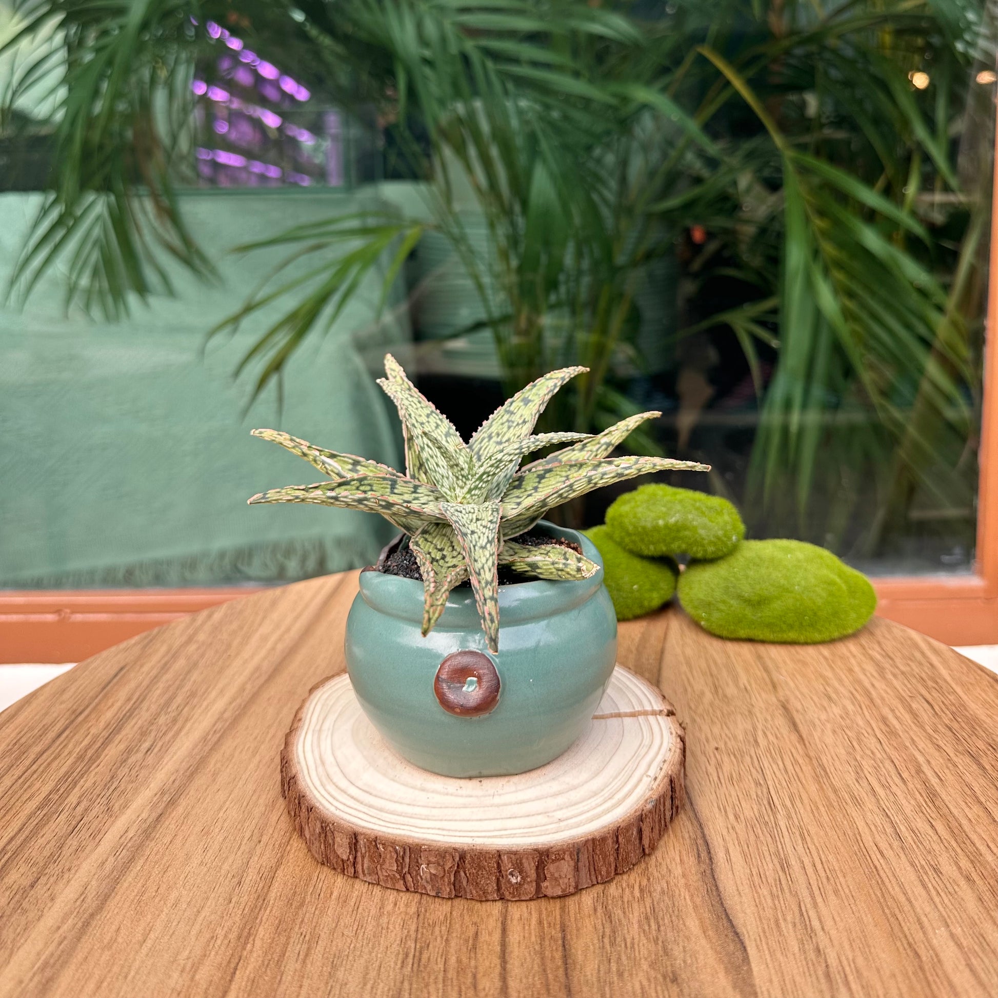Aloe Christmas Carol is a very cute succulent family which their leaves are in light green and dark green pattern and this succulent is easy to maintain just placed it with bright indirect sunlight and water once a week will do!