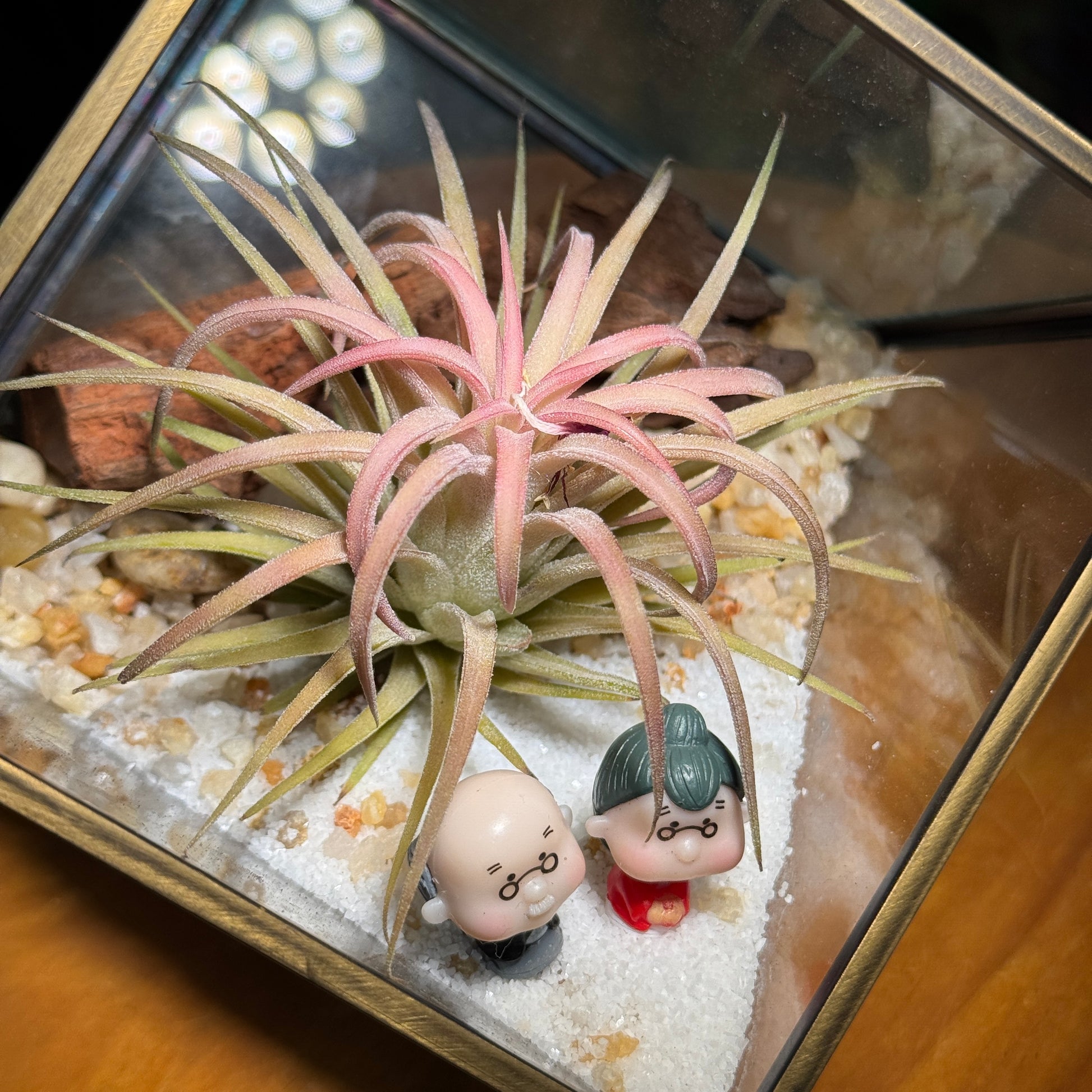 Gift for Him/Her: Airplant in Golden Frame Cubical Terrarium Glass