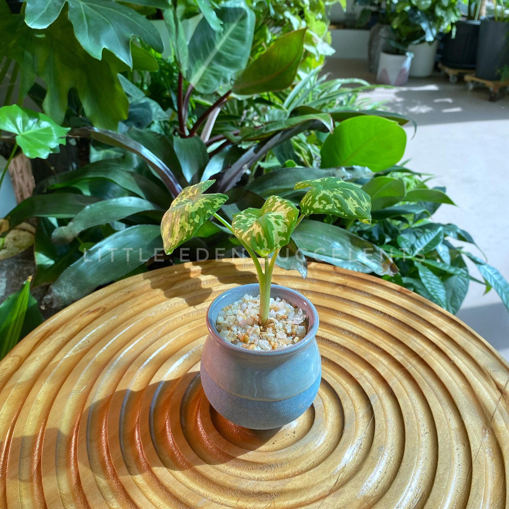 Add a bold pop of color to your indoor or outdoor space with the Caladium Hilo. Known for its striking, heart-shaped leaves with deep green hues and white veins, this tropical plant thrives in shaded spots and brings a lively, exotic feel to any setting. Perfect for brightening up any corner with its unique foliage!