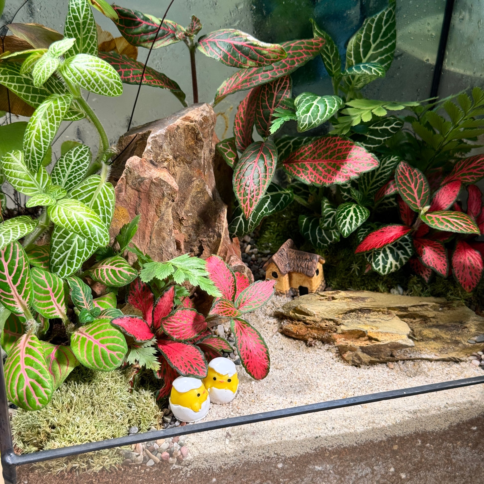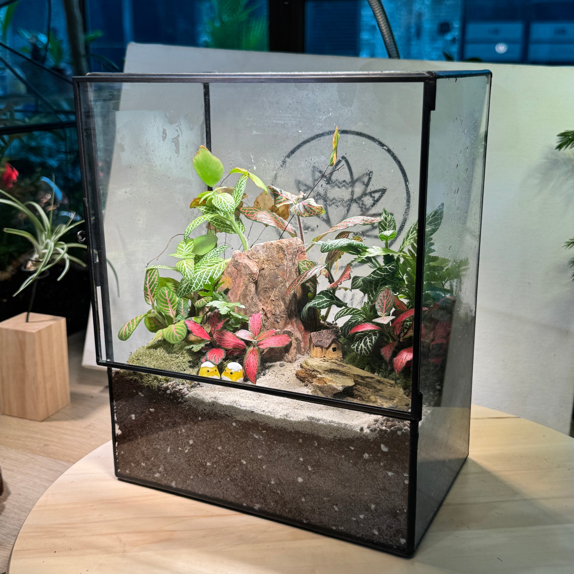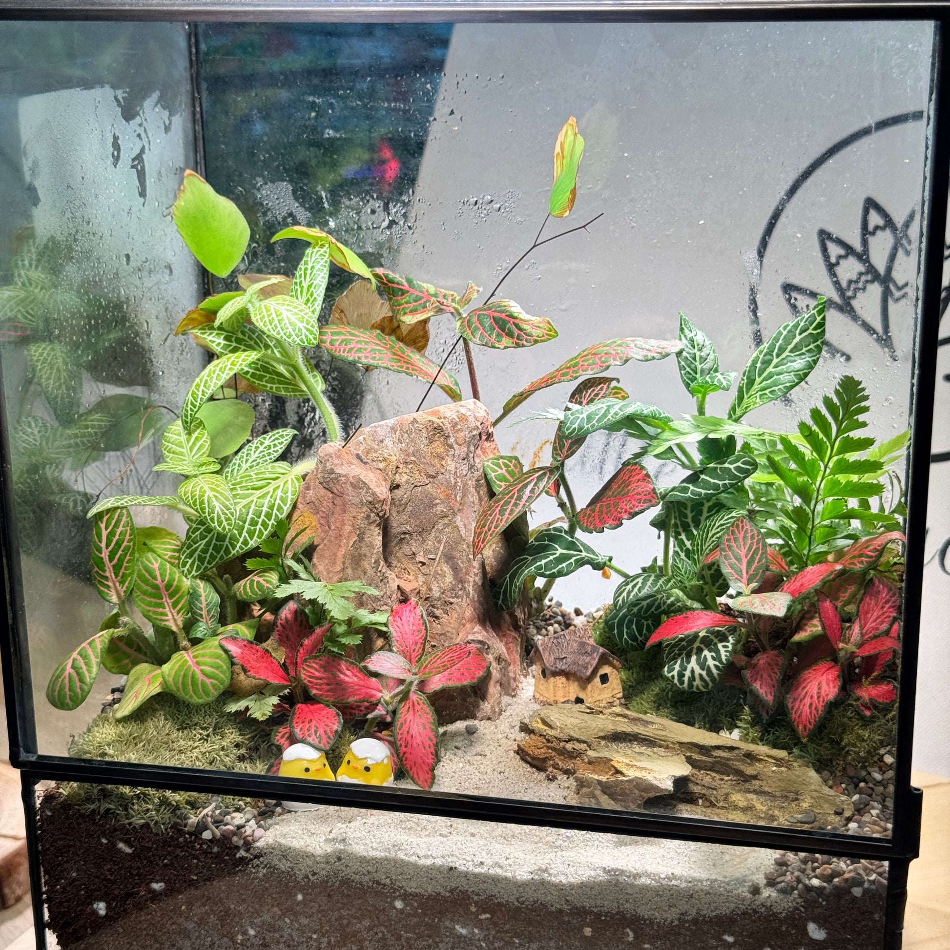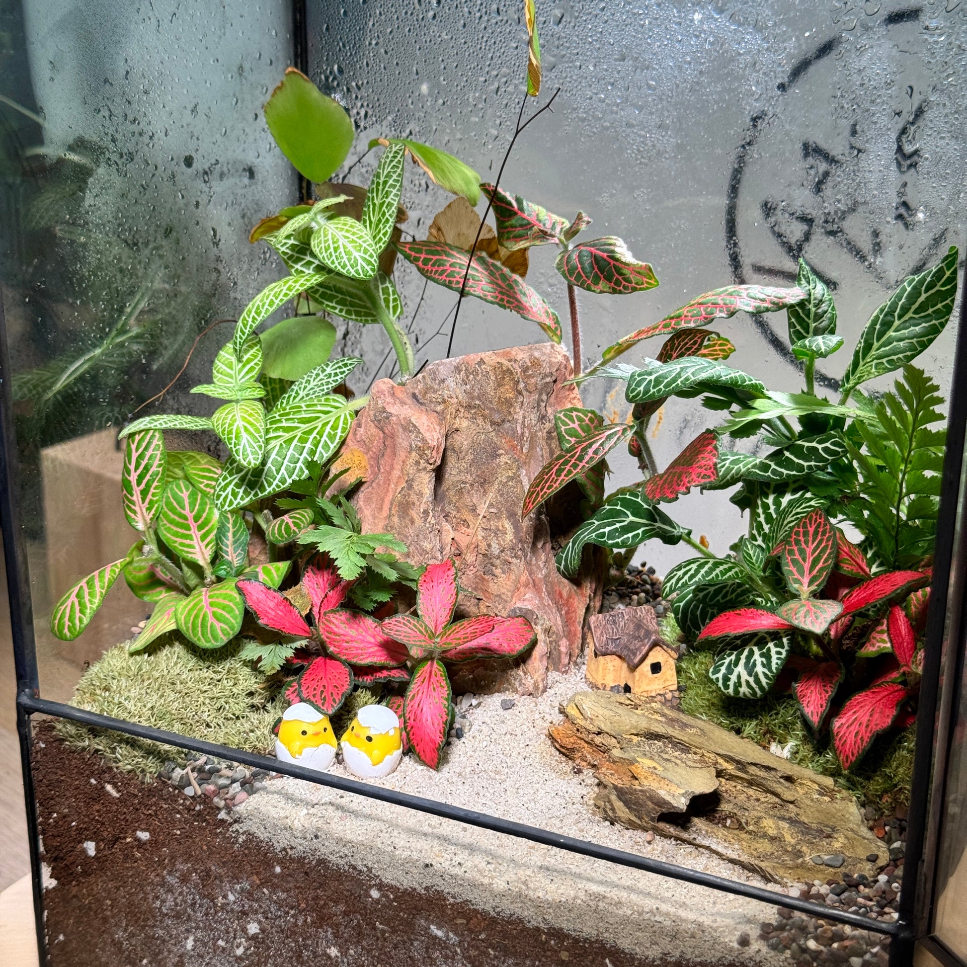 Fittonia & Fern with Moss Arrangement in Black Frame Rectangular Terrarium