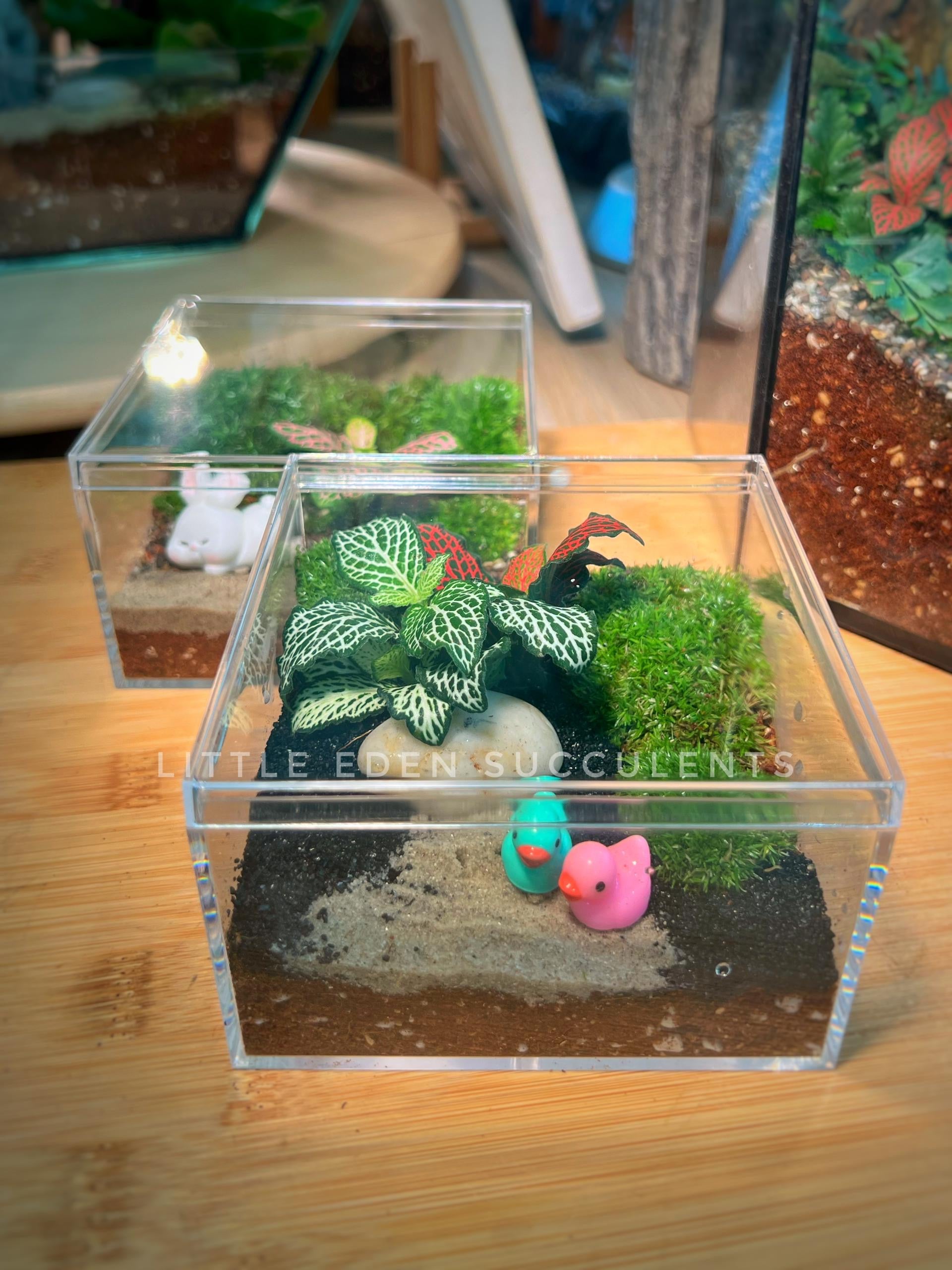 Fittonia with Moss Arrangement in Arcylic Box Terrarium (L2)