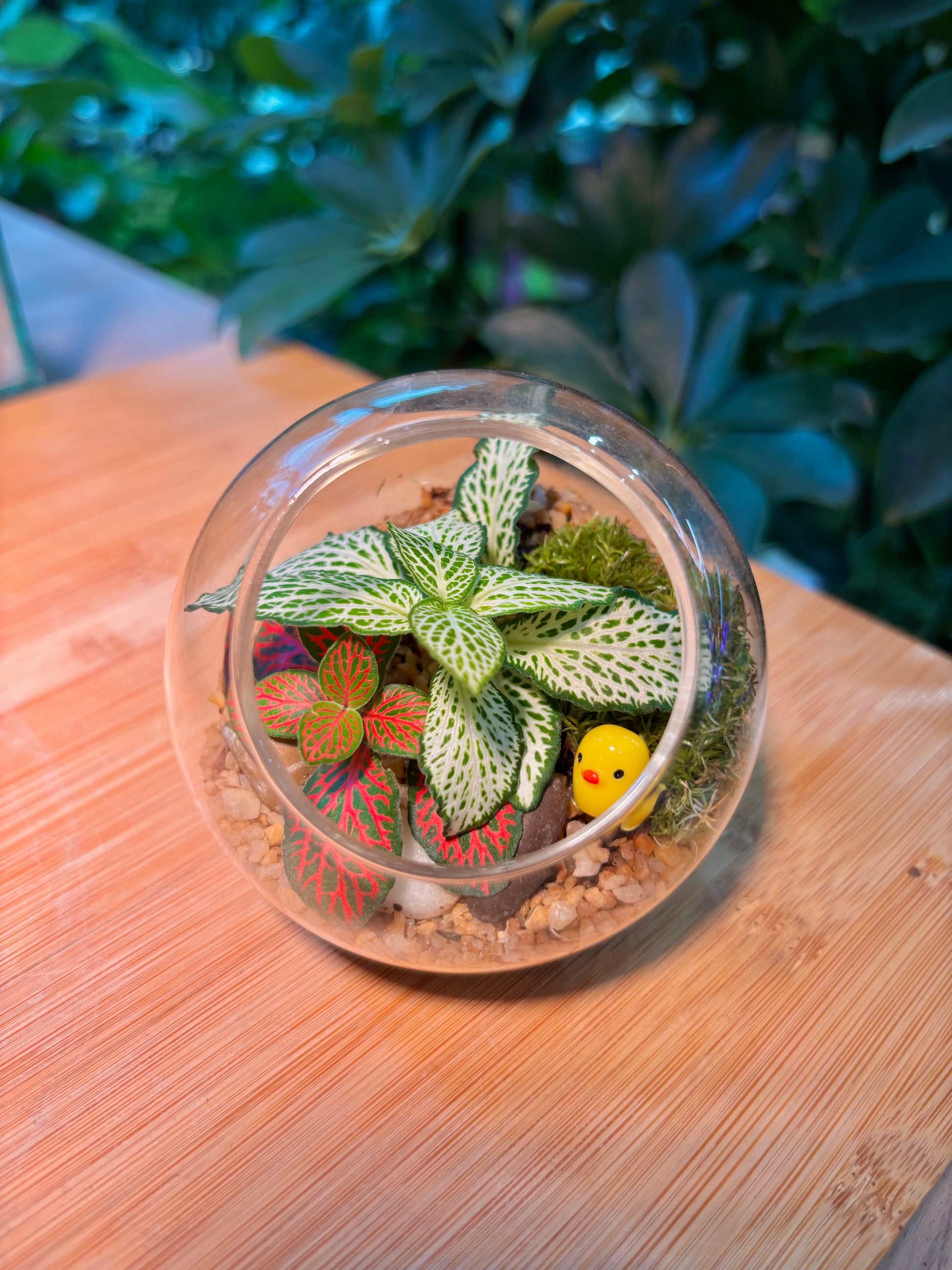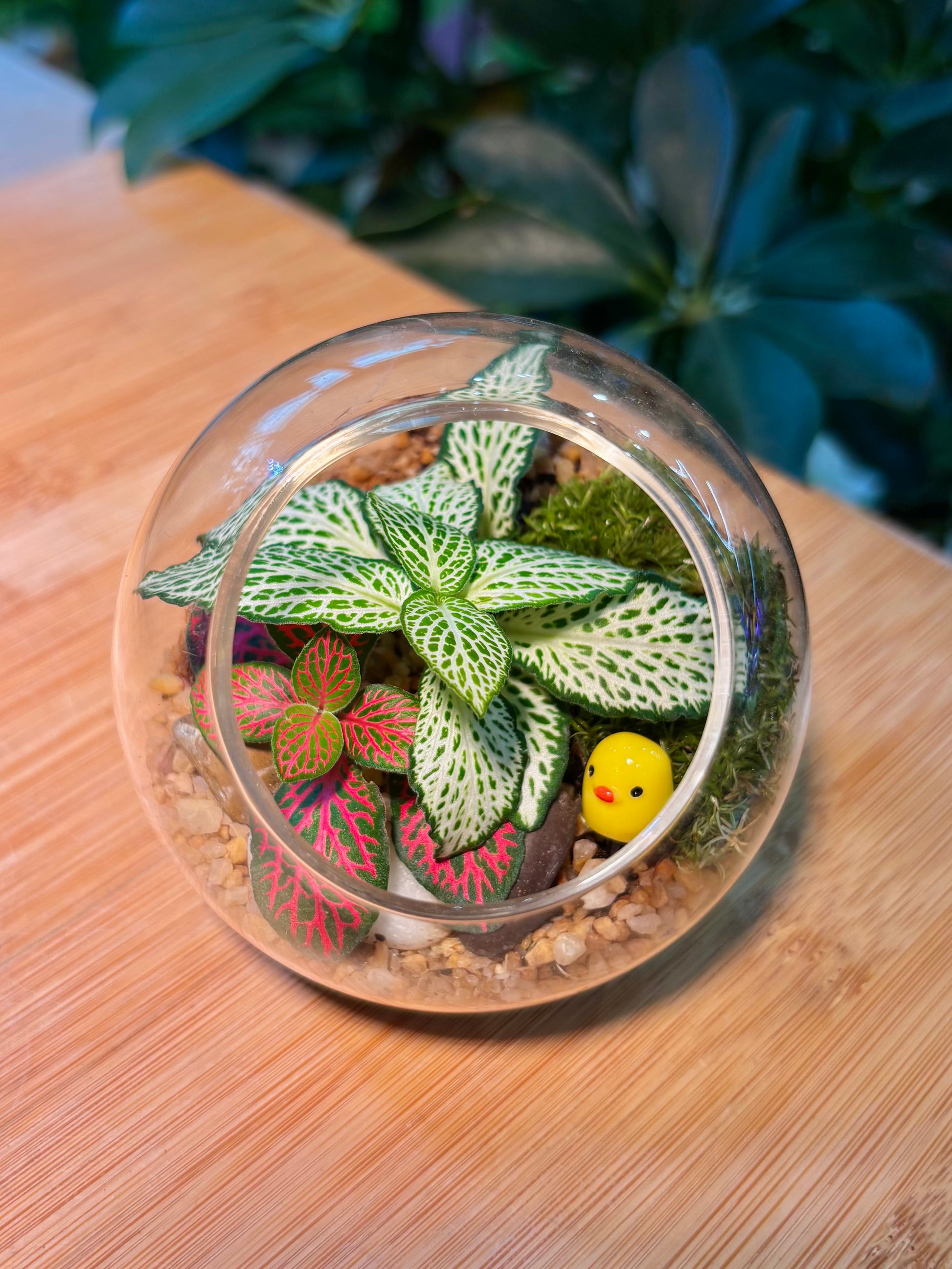 Fittonia with Moss Arrangement in Round Glass Terrarium