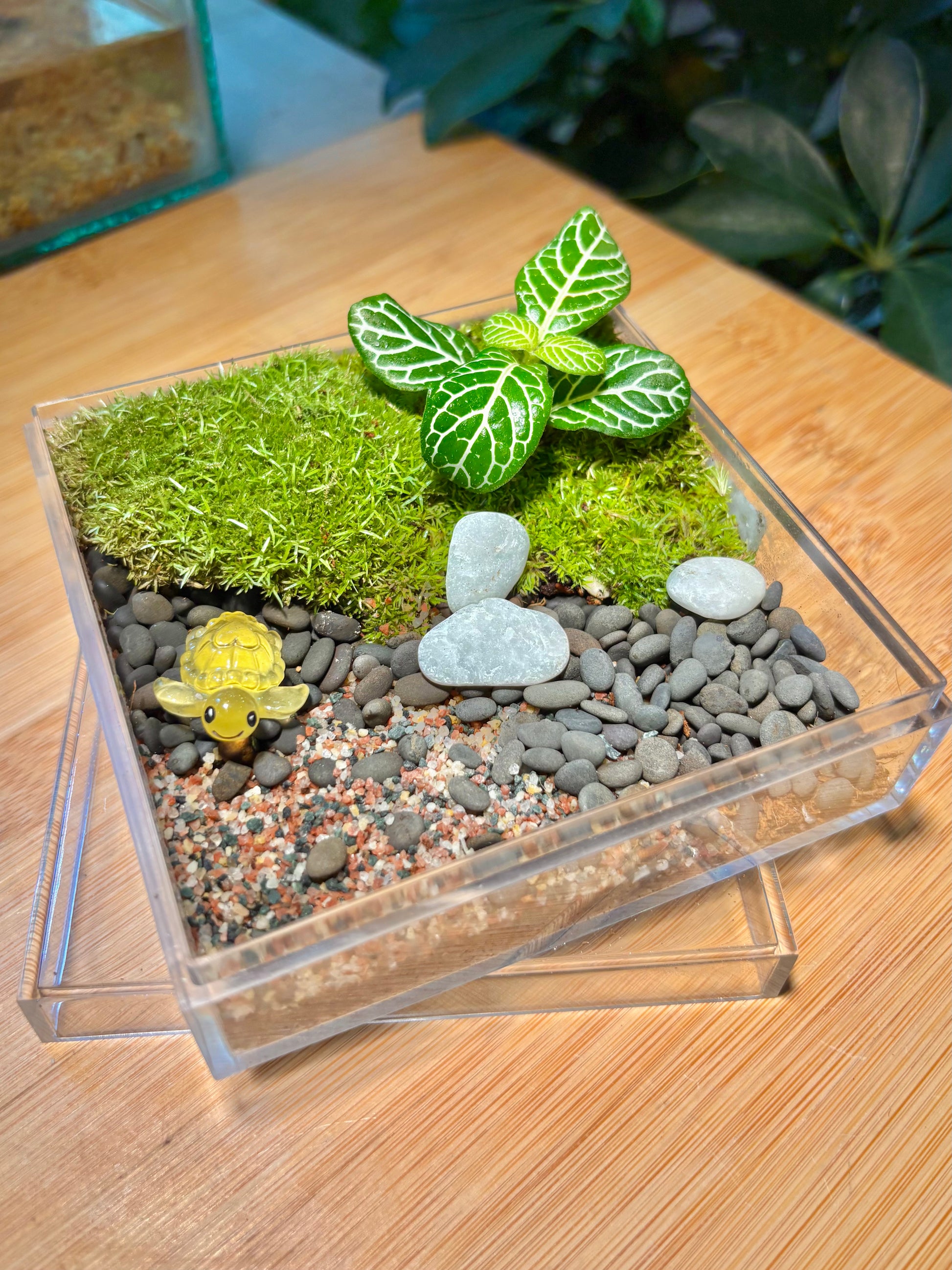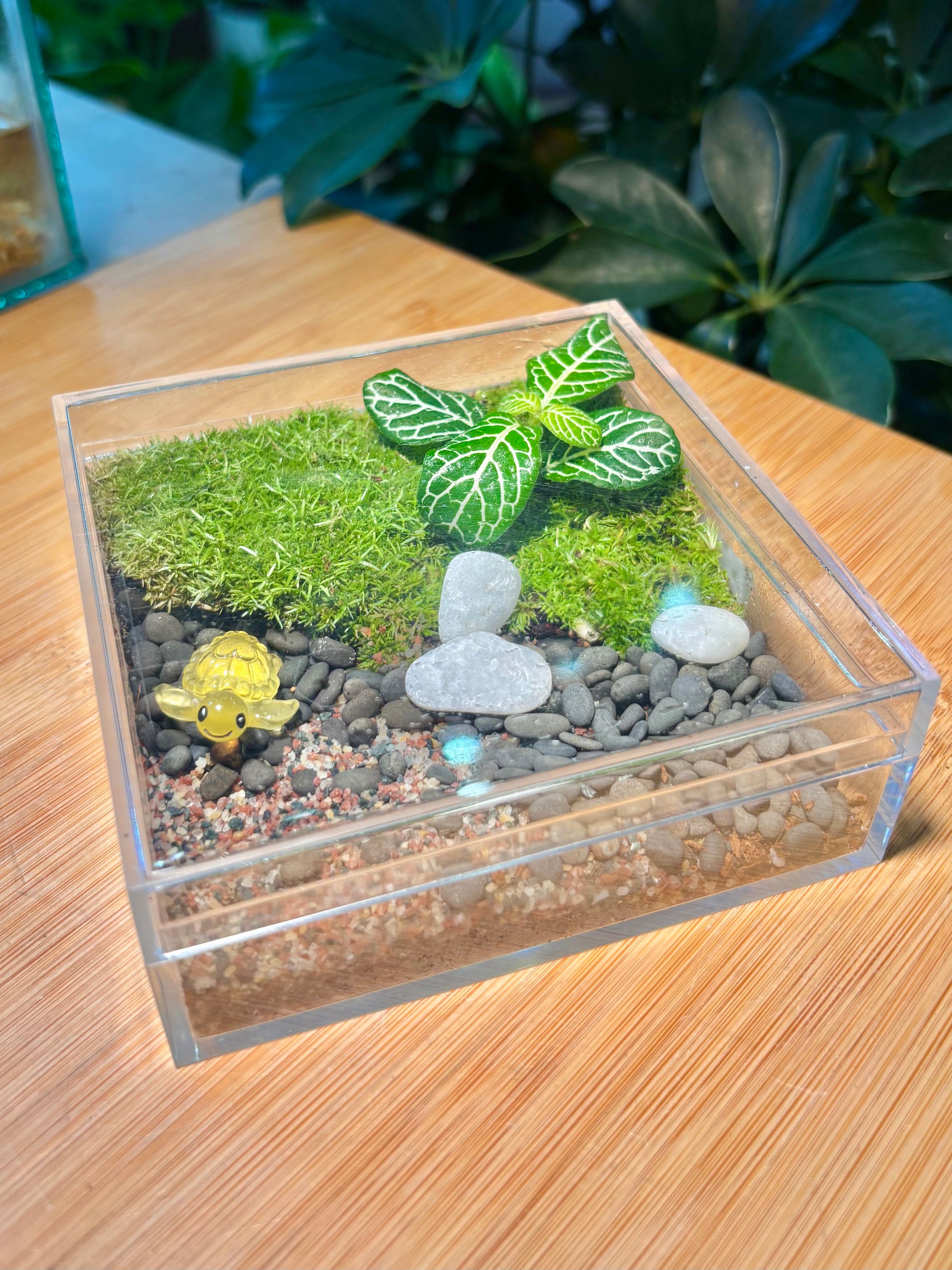 Fittonia with Moss Arrangement in Arcylic Terrarium (L1)
