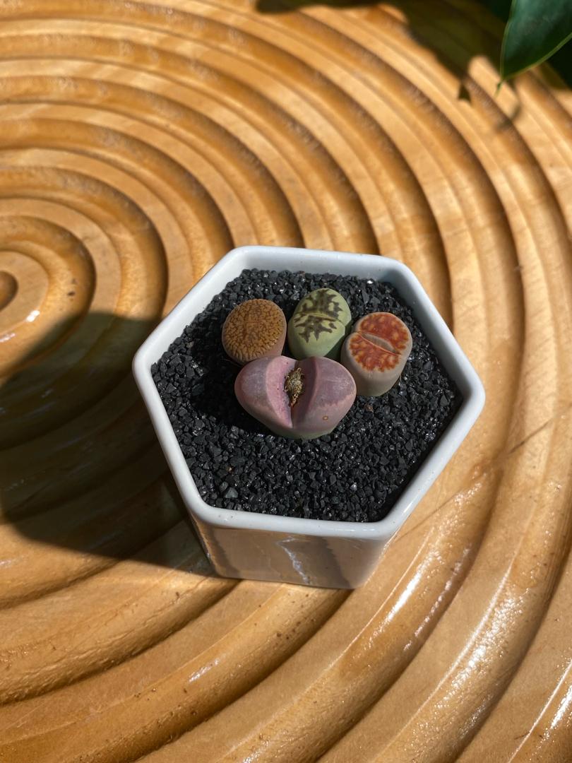 Lithops Collection in White Ceramic Pot