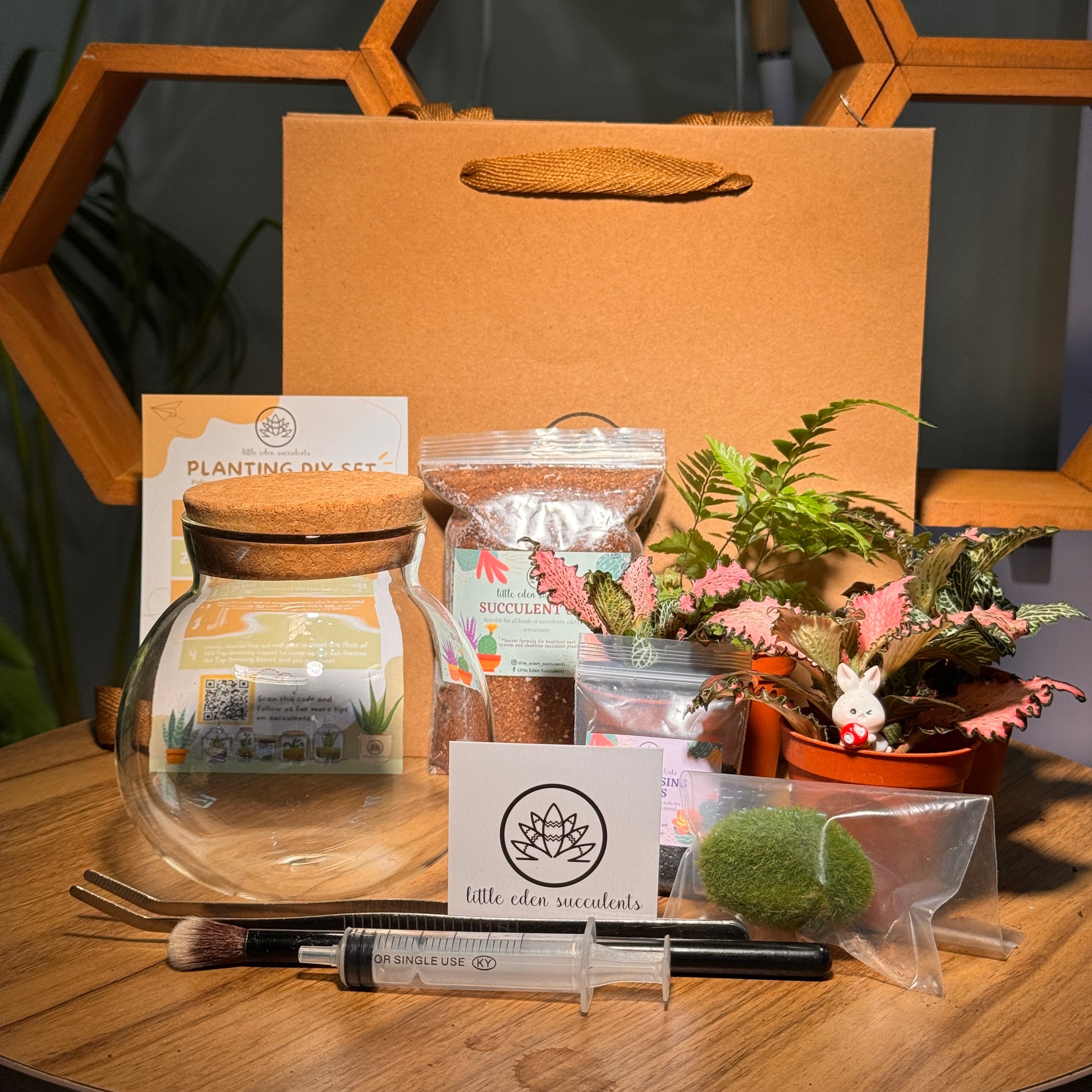 Round Covered Glass Indoor Plant Terrarium (L) DIY Set