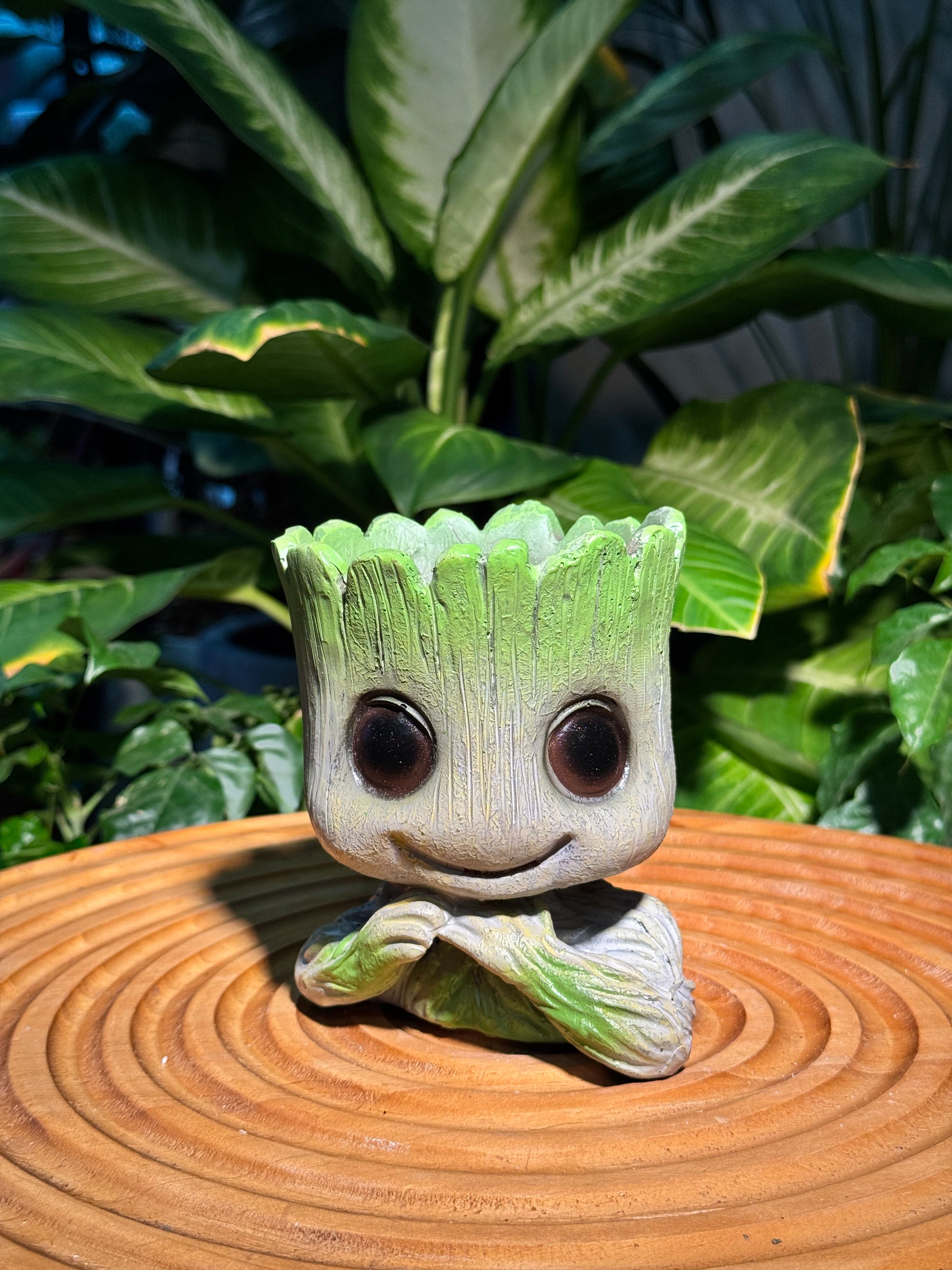The "Smilling Groot" pot is a whimsical and charming planter inspired by the beloved character, Groot. The pot is perfect for small plants like succulents, allowing the greenery to "grow" out of Groot’s head, much like his connection to nature. With its earthy tones and adorable design, the "Smilling Groot " pot brings a touch of magic and personality to your home, making it a must-have for both plant lovers and Marvel fans!