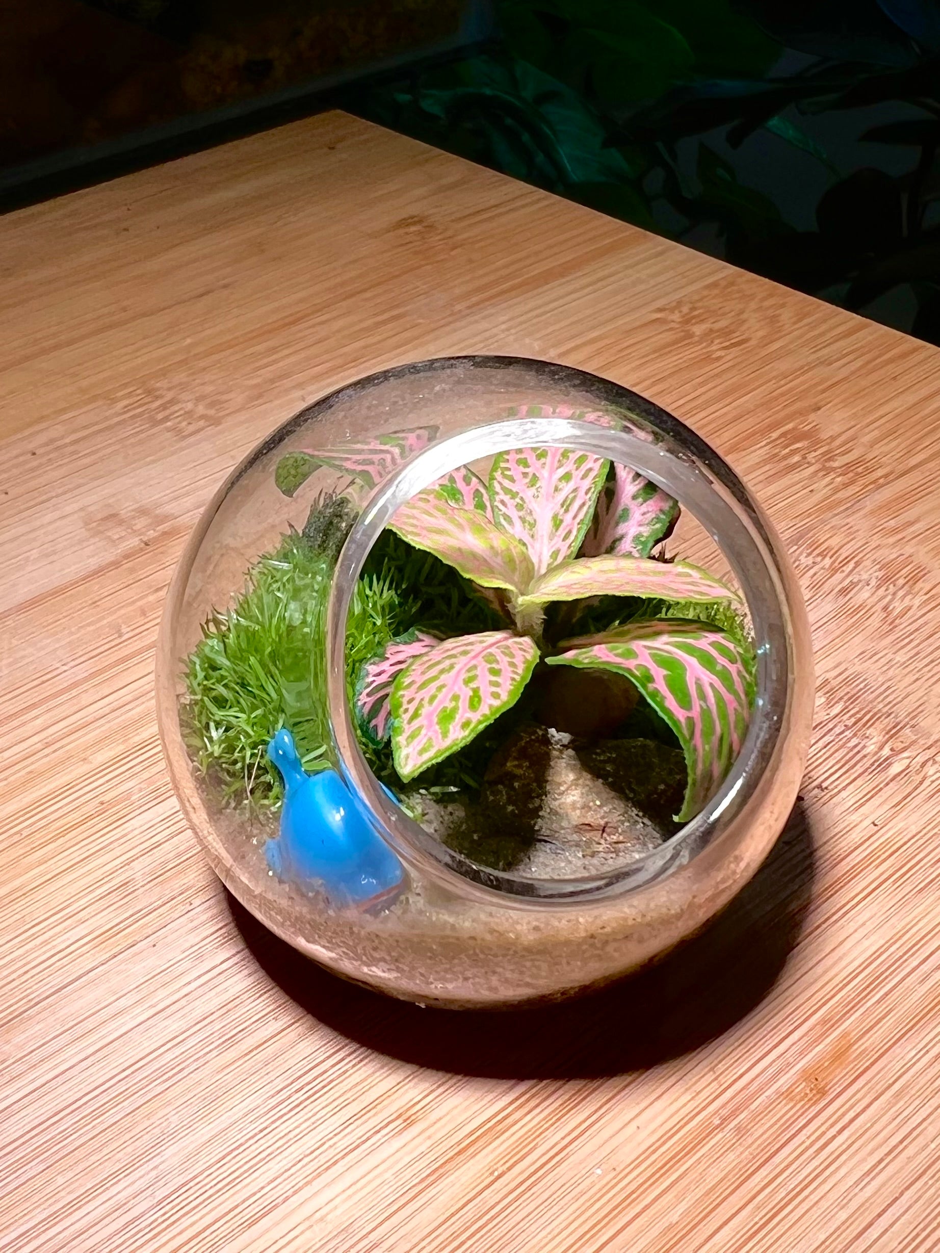 Fittonia with Moss Arrangement in Round Glass (XS)