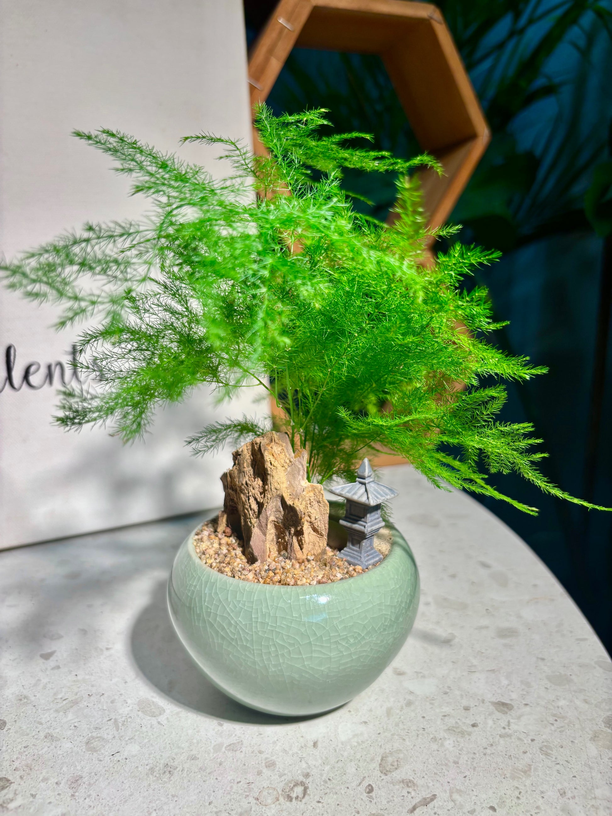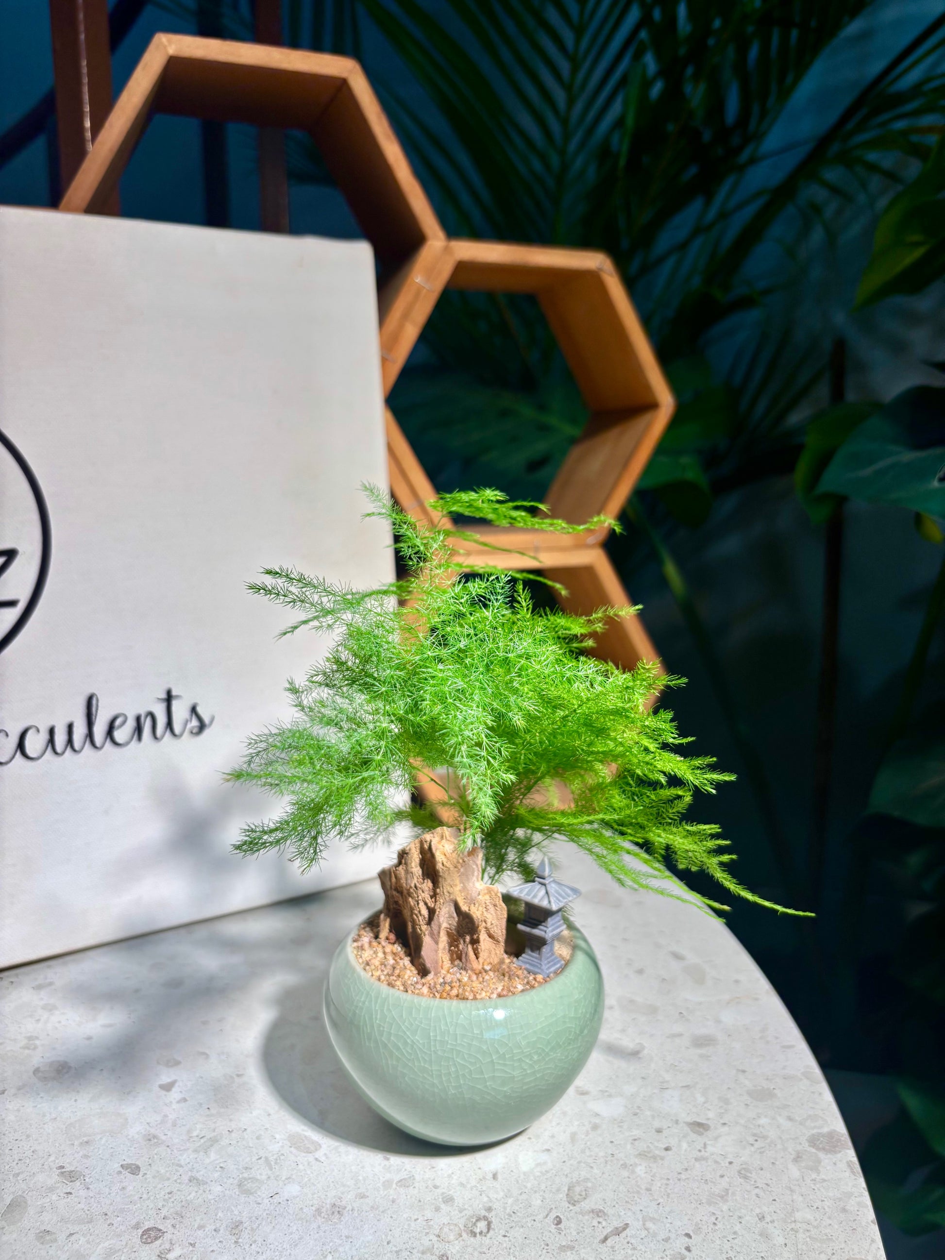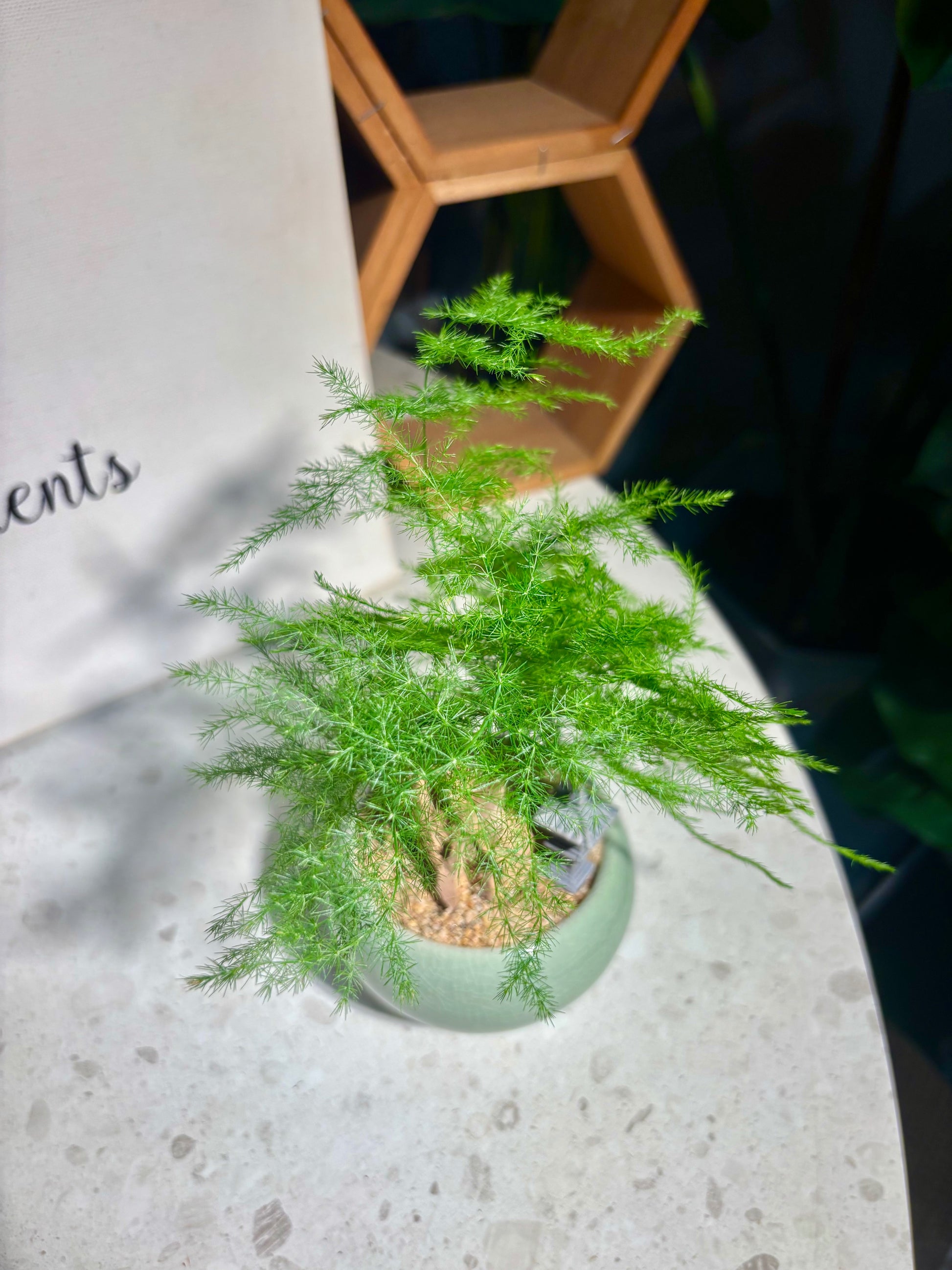 This plant can grow as a trailing, climbing, or bushy plant, depending on how it is trained, and is loved for adding a graceful, ornamental touch to homes and gardens. It thrives in bright, indirect light, slightly moist but well-drained soil, and moderate humidity. Easy to grow and versatile, Asparagus setaceus brings a soft, refined greenery that pairs beautifully with other plants or stands out on its own.