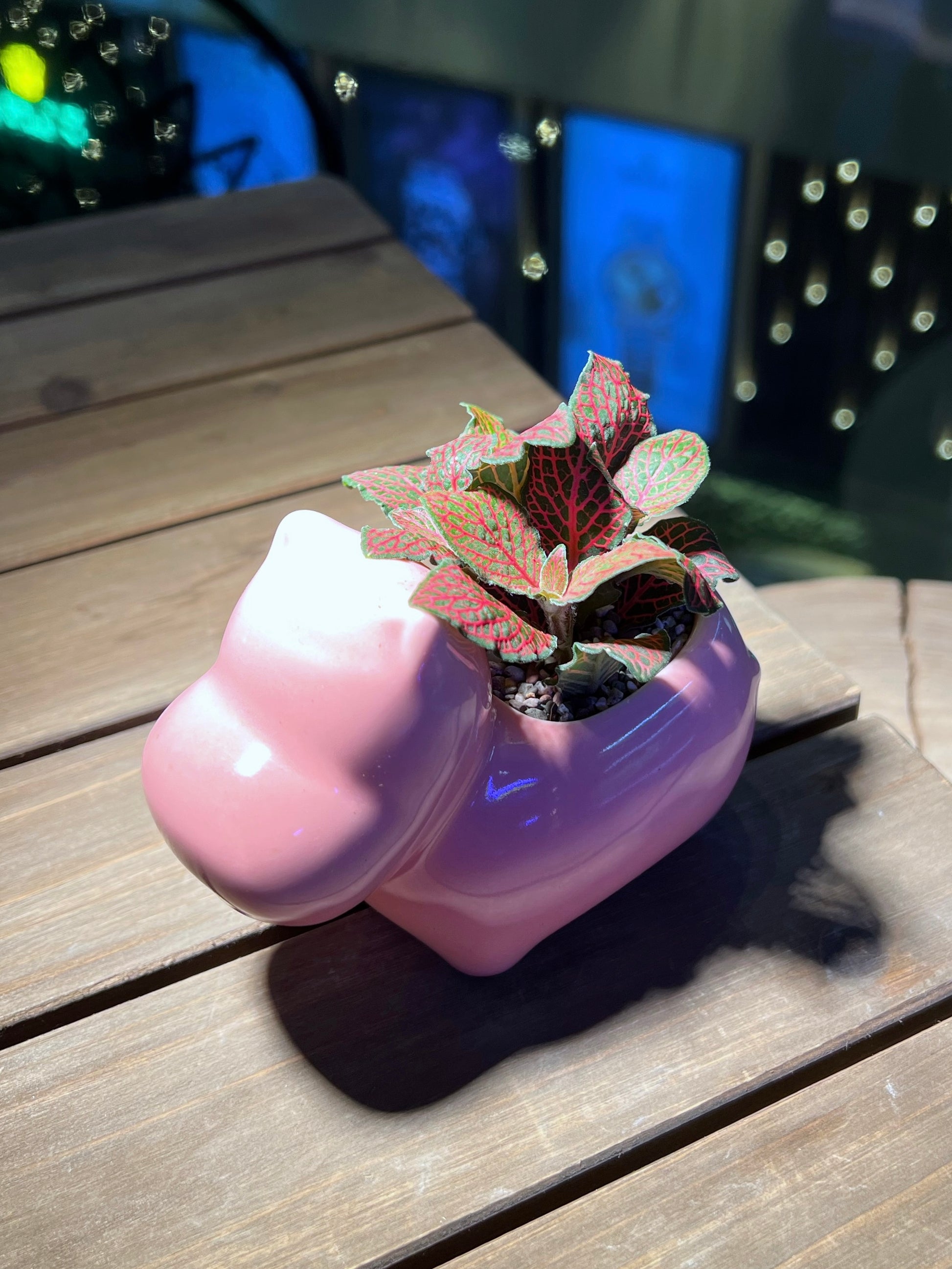 Fittonia in Pink Hippopotamus Ceramic Pot