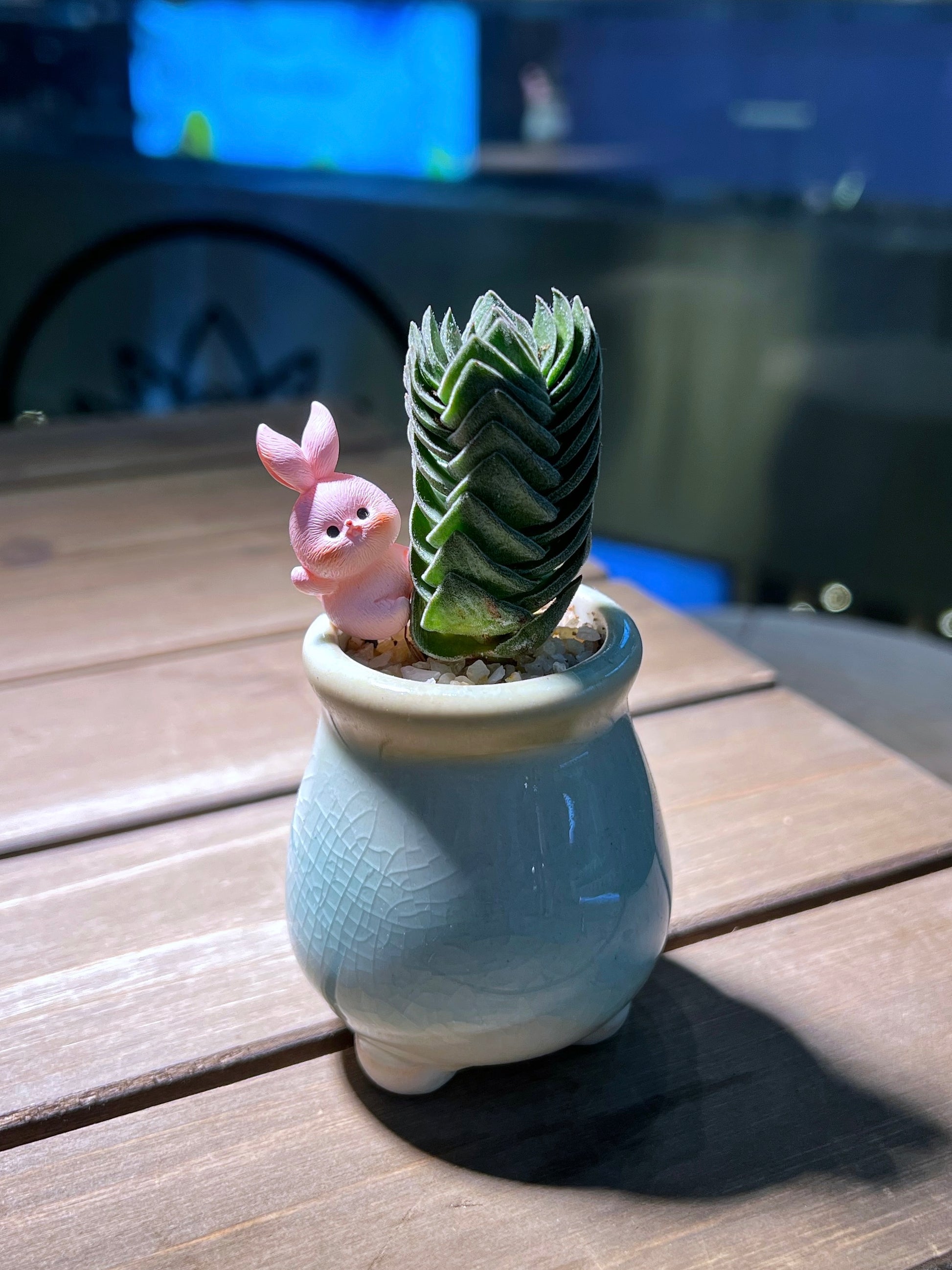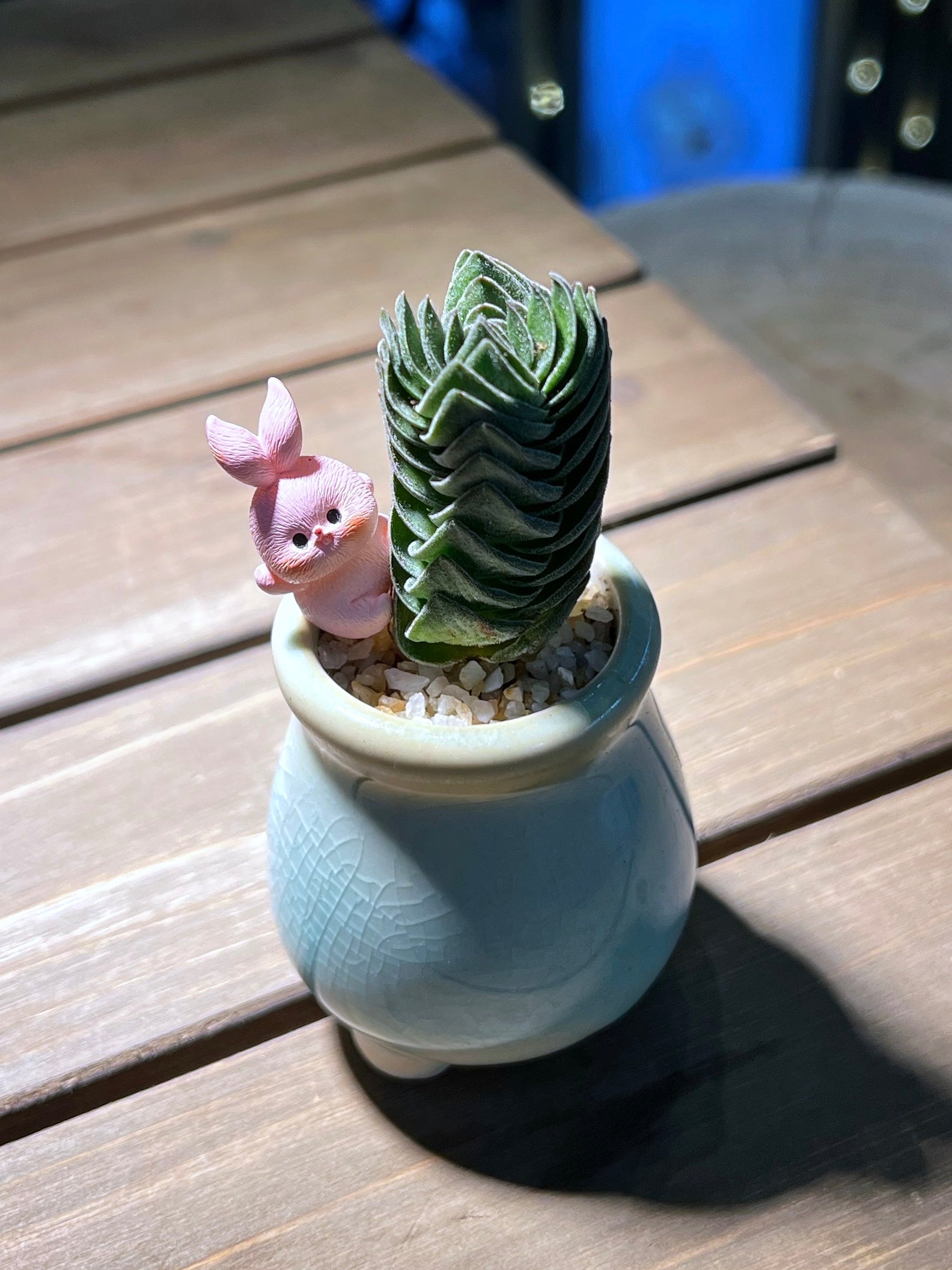Crassula Buddha in Sky Blue Finger Ceramic Pot