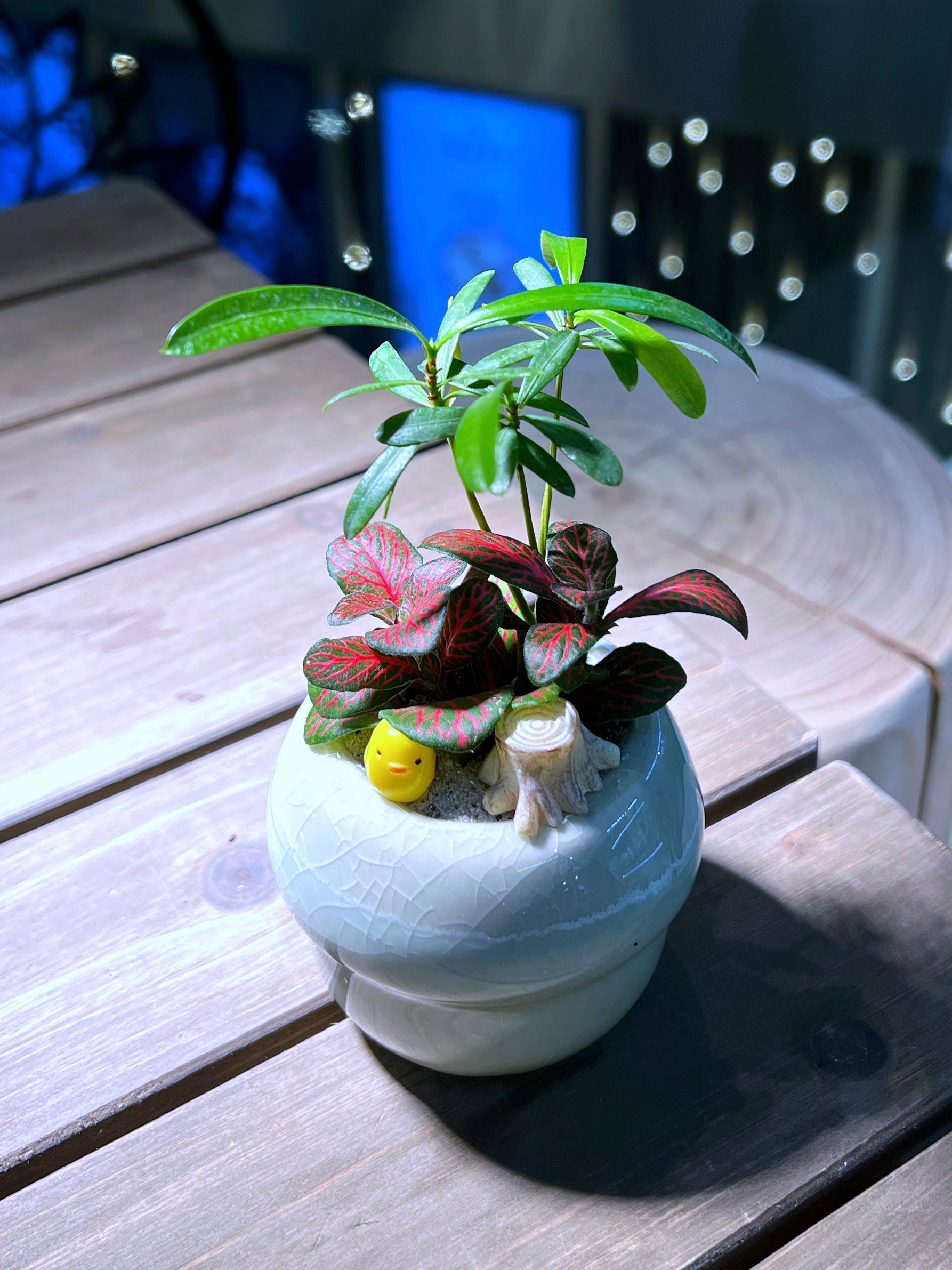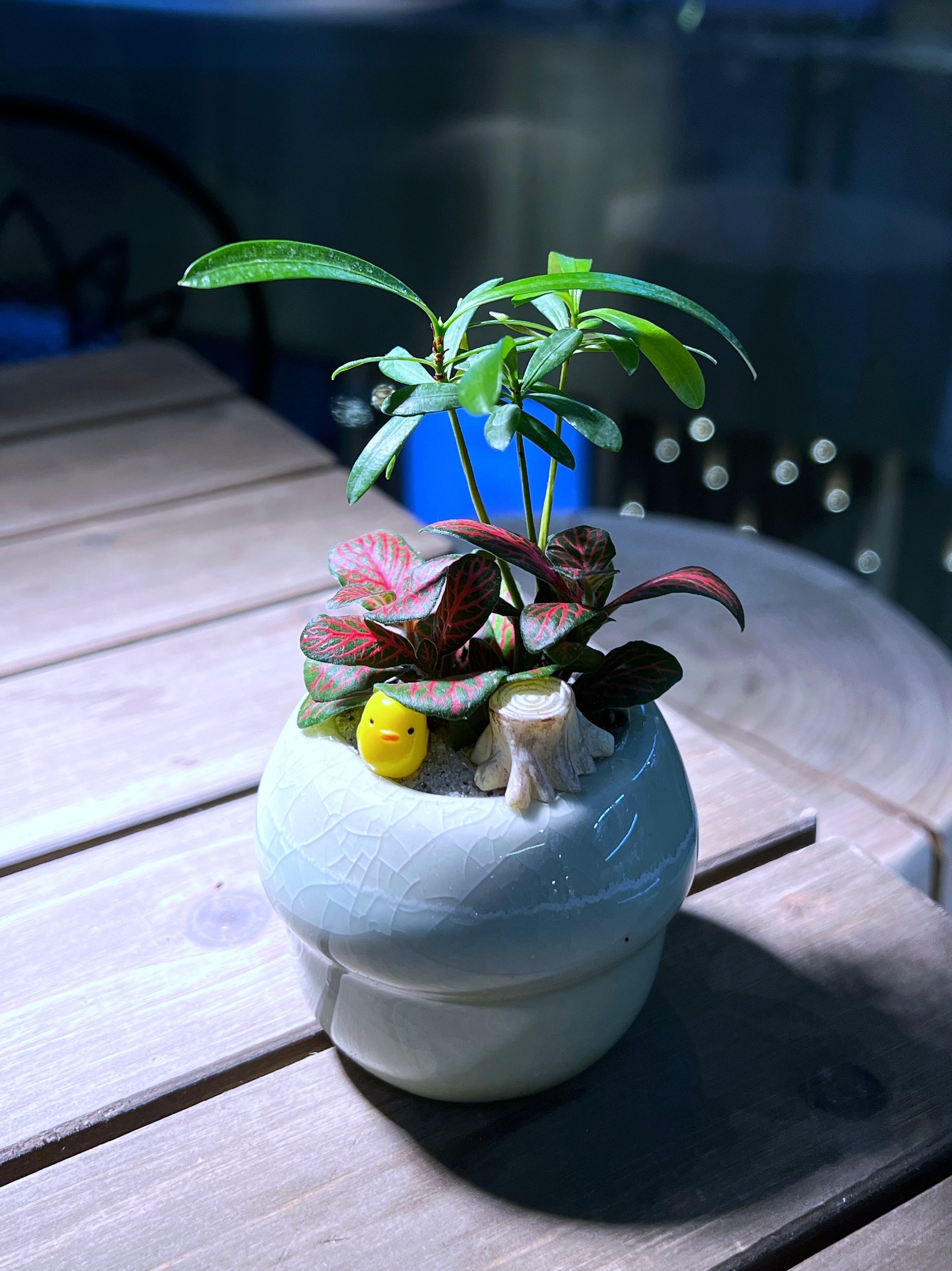 Fittonia & Fern Arrangement in Mushroom Head Pot
