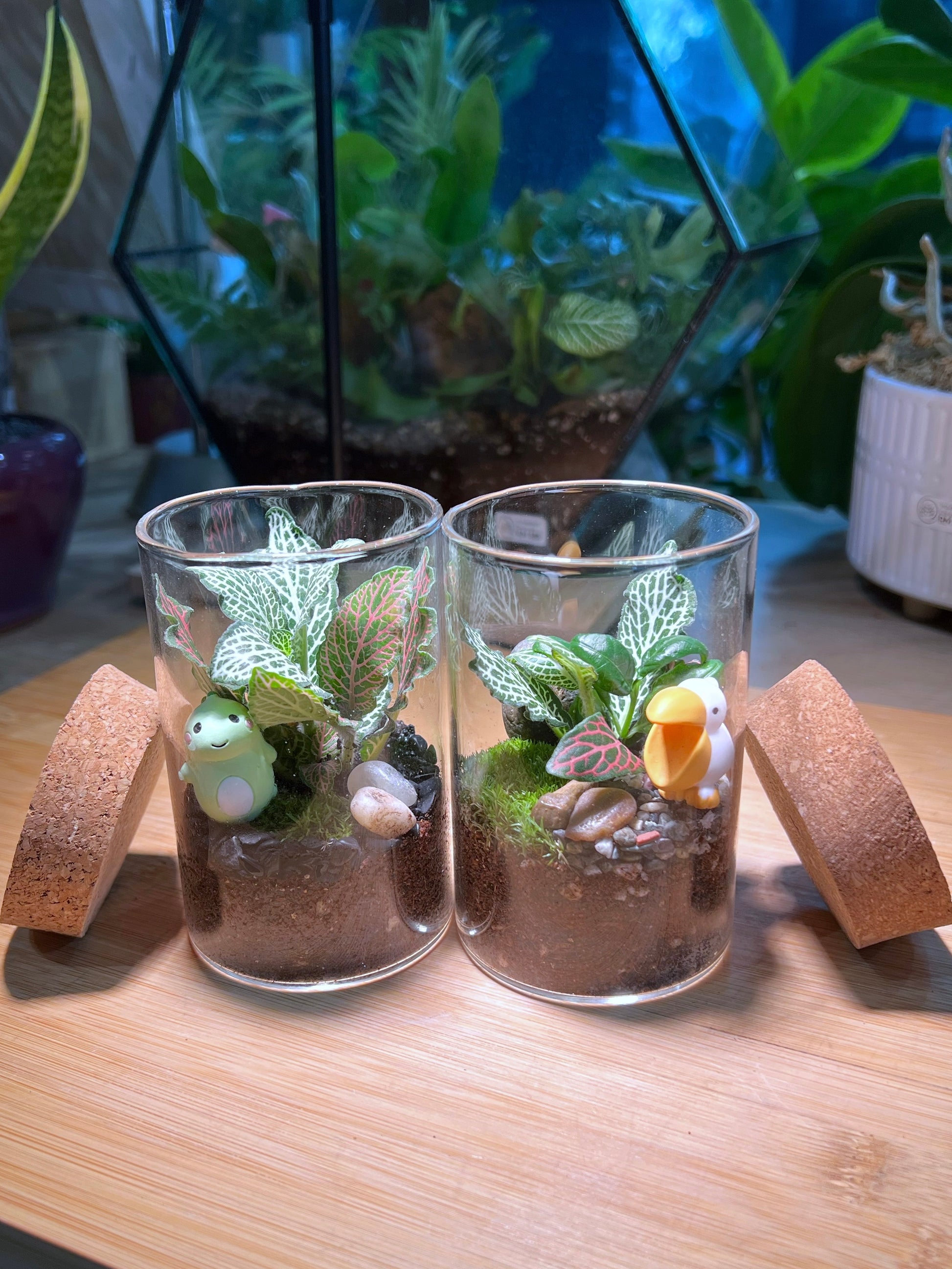 Fittonia with Moss Arrangement in Tall Cylindrical Glass (L)