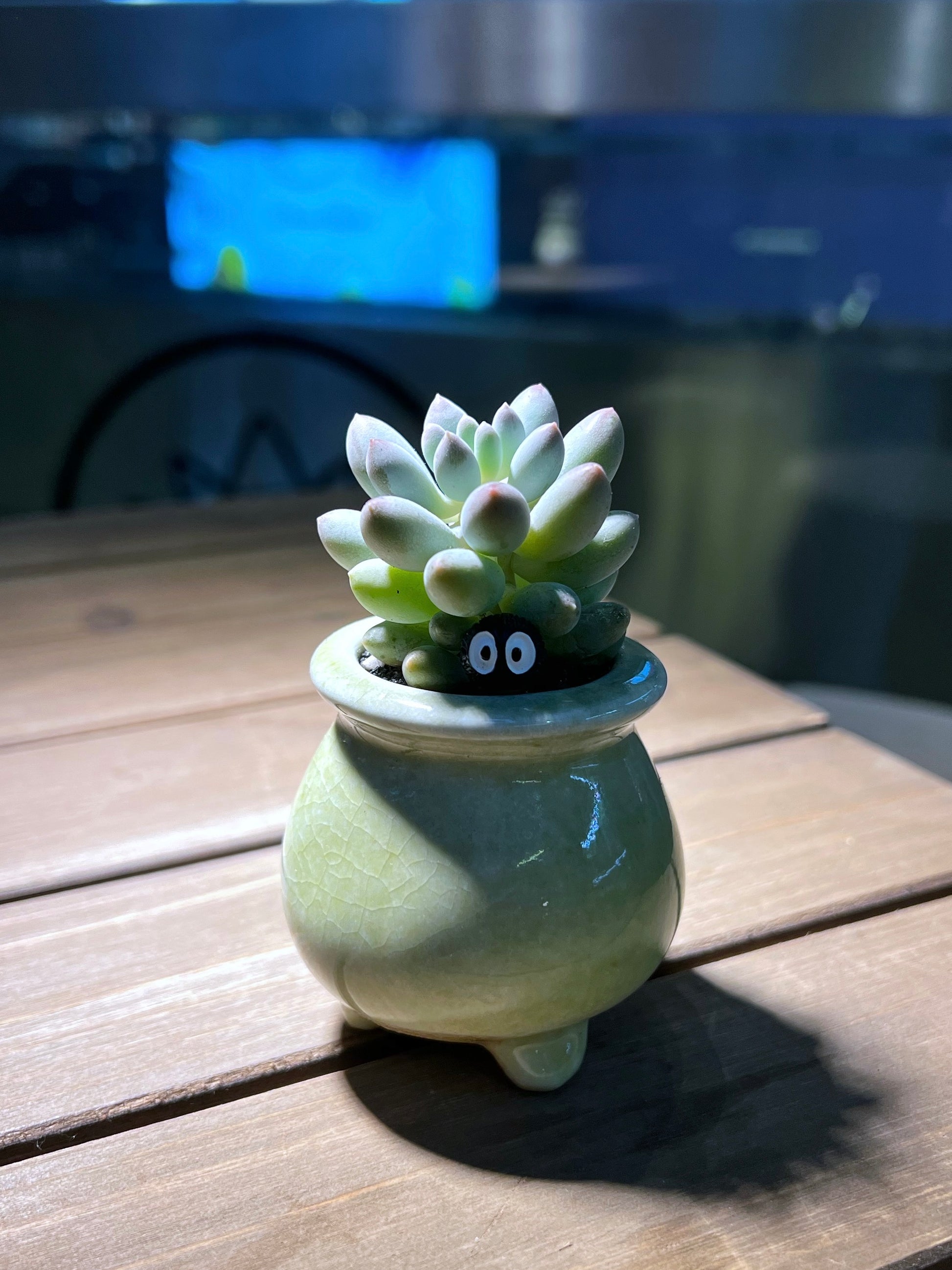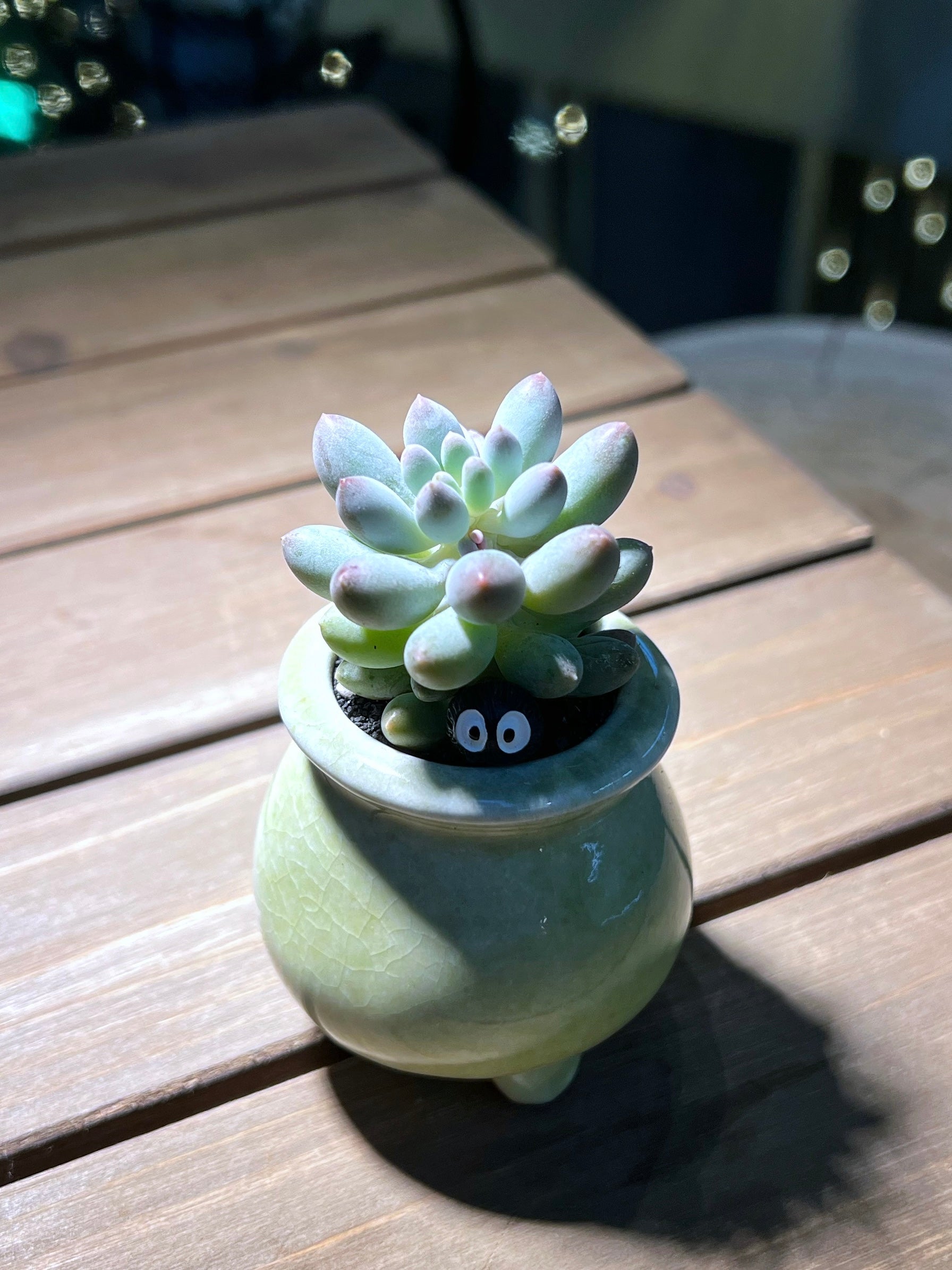 Pachyphytum in Lime Green Glazed Ceramic Pot