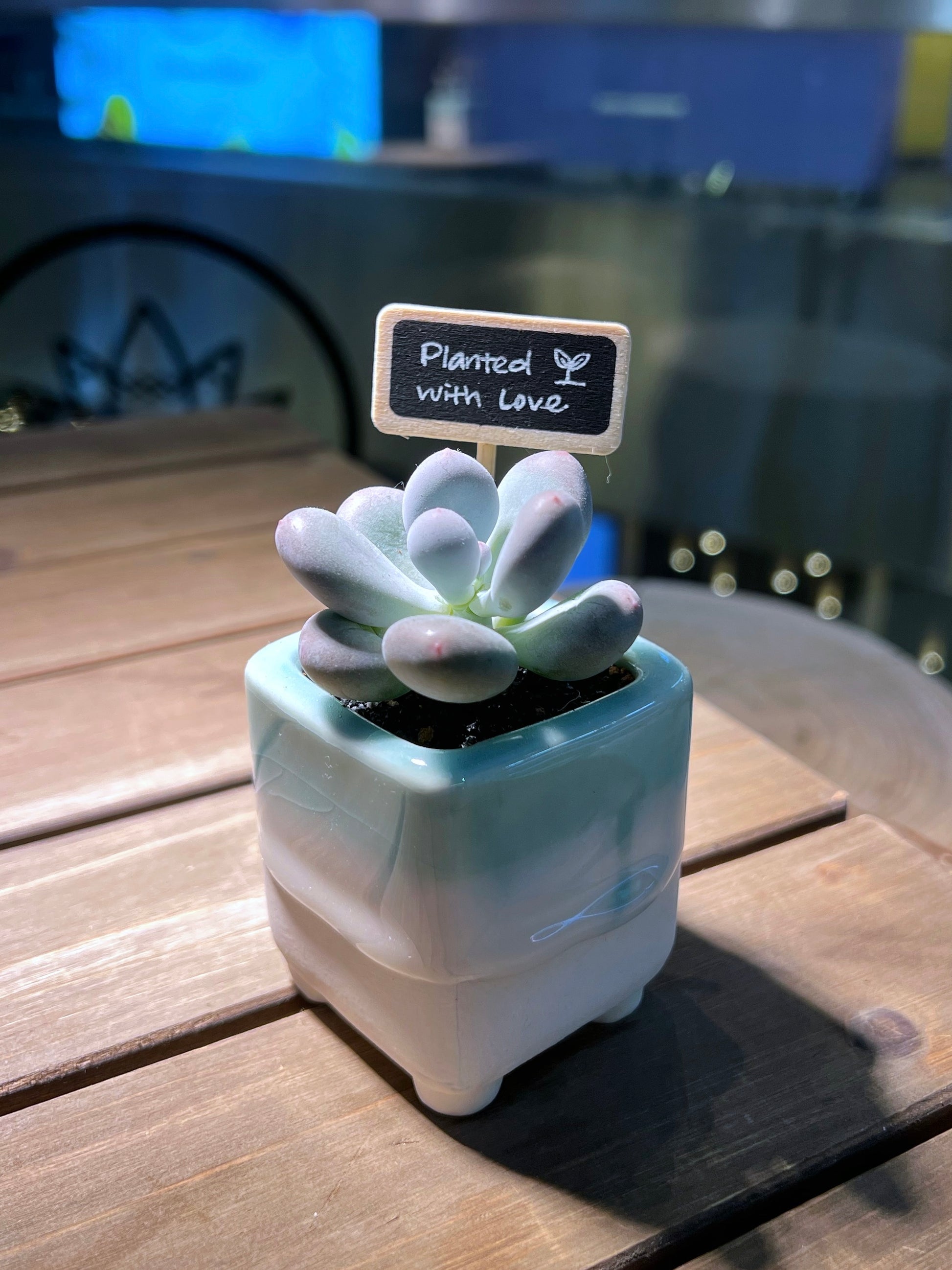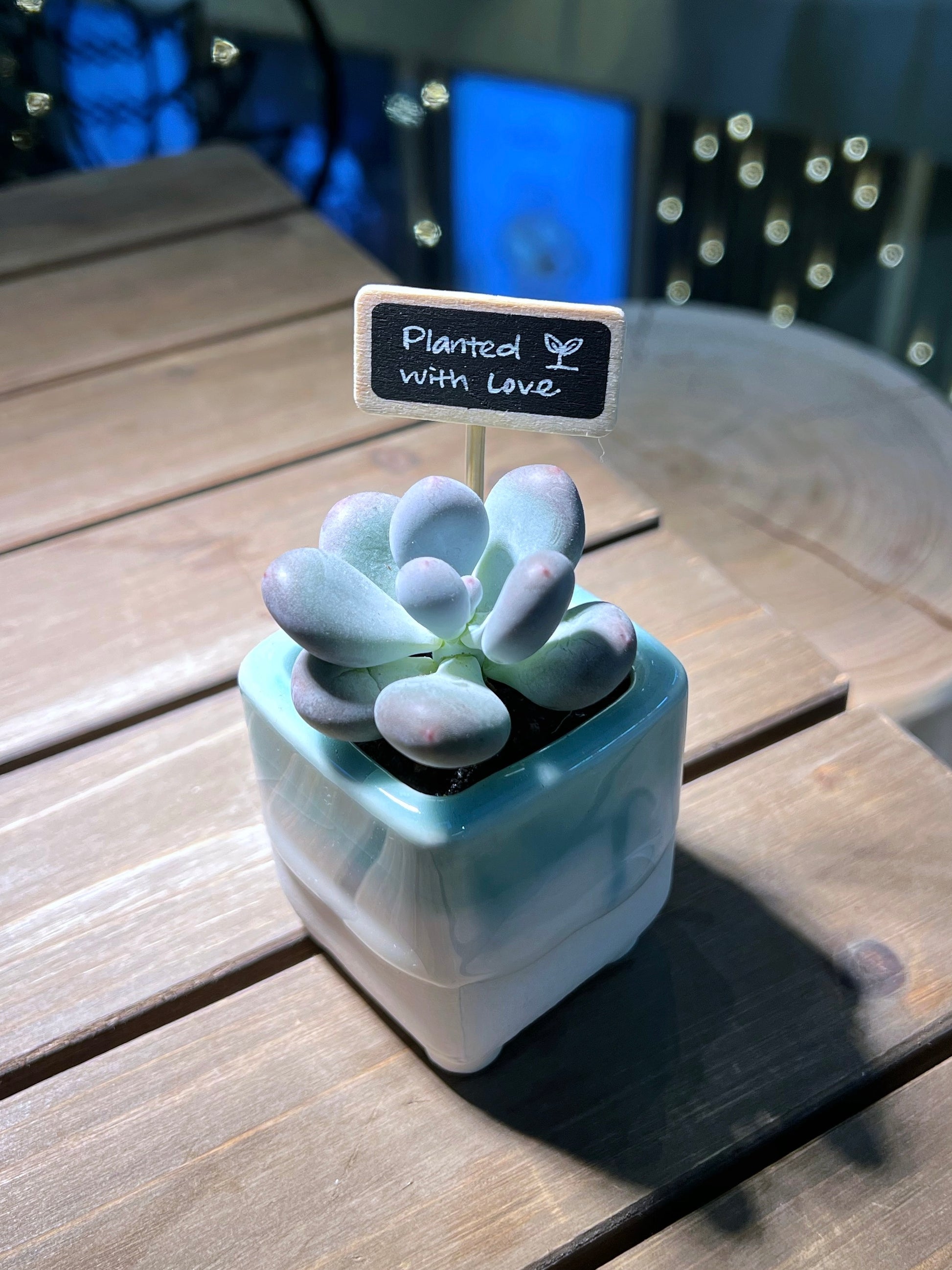 Pachyphytum in Mint Glazed Square Ceramic Pot